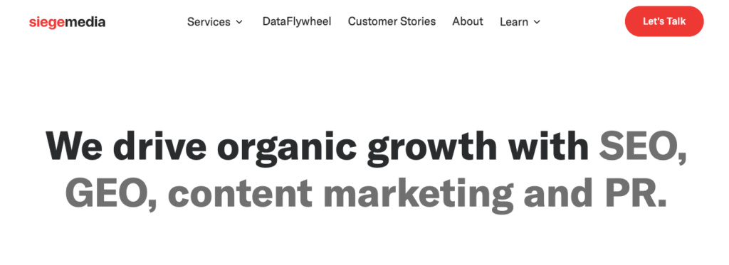 Siege Media | Content-Driven SEO | High-quality content, natural link building, authority building | Startups, brands in competitive niches |